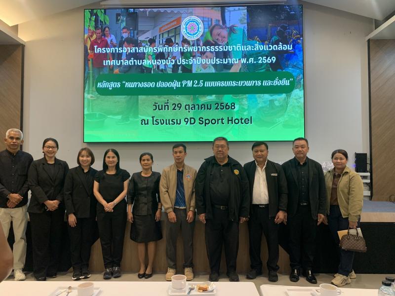 วันพุธที่ 29 ตุลาคม 2568 นางสาวรัชนี บุบผาชื่น รองนายกเทศมนตรีตำบลยางชุม นางรพีพรรณ ปานะถึก ปลัดเทศบาลตำบลยางชุม นายสมพร ธุระพระ ประธานสภาเทศบาล นายวัชรินทร์ ชาดวง เลขานุการสภาเทศบาลนายสุวิเชียร ใจกล้า สมาชิกสภาเทศบาล เข้าร่วมประชุมโครงการอาสาสมัคร พิทักษ์ทรัพยากรธรรมชาติและสิ่งแวดล้อม หลักสูตร "หนทางรอด ปลอดฝุ่น PM 2.5 แบบครบกระบวนการ และยั่งยืน" ณ โรงแรม 9D Sport Hotel จังหวัดอุดรธานี