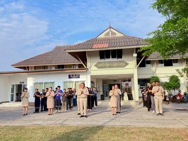 วันจันทร์ ที่ 23 กุมภาพันธ์ 2569 เทศบาลตำบลยางชุม นำโดยนายสมควร ระเเพงศรี นายกเทศมนตรีตำบลยางชุม พร้อมด้วยคณะผู้บริหาร สมาชิกสภาฯ ข้าราชการ เเละพนักงานเทศบาลทุกคน จัดกิจกรรมเคารพธงชาติหน้าเสาธงร้องเพลงชาติ ซึ่งจัดขึ้นทุกวันจันทร์ เพื่อเเสดงความจงรักภักดีต่อชาติ ศาสนา พระมหากษัตริย์ เเละเเสดงความไว้อาลัยให้กับทหารกล้า ณ บริเวณหน้าเสาธง สำนักงานเทศบาลตำบลยางชุม