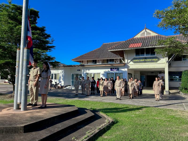 วันจันทร์ ที่ 24 พฤศจิกายน 2568 เทศบาลตำบลยางชุม นำโดยนายสมควร ระเเพงศรี นายกเทศมนตรีตำบลยางชุม พร้อมด้วยคณะผู้บริหาร สมาชิกสภาฯ ข้าราชการ เเละพนักงานเทศบาลทุกคน จัดกิจกรรมเคารพธงชาติหน้าเสาธงร้องเพลงชาติ ซึ่งจัดขึ้นทุกวันจันทร์ เพื่อเเสดงความจงรักภักดีต่อชาติ ศาสนา พระมหากษัตริย์ ณ บริเวณหน้าเสาธง สำนักงานเทศบาลตำบลยางชุม