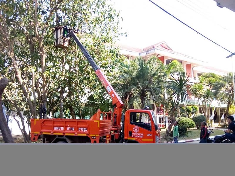 วันที่ 9 กุมภาพันธ์ 2569 นายสมควร ละแพงศรี นายกเทศมนตรีตำบลยางชุม มอบหมายให้ เจ้าหน้าที่กองช่าง ประจำรถกระเช้า ให้ลงพื้นที่อำนวยความสะดวกตัดต้นไม้ให้แก่สถานศึกษาโรงเรียนเชียงเพ็งวิทยา