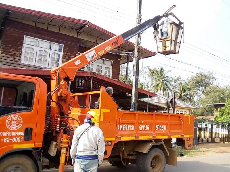 วันที่ 13 กุมภาพันธ์ 2569 นายสมควร ระเเพงศรี นายกเทศมนตรีตำบลยางชุม มอบหมายทีมงานกองช่าง ออกพื้นที่สำรวจไฟฟ้า เเละซ่อมแซมไฟฟ้าที่ชำรุดเสียหาย ม.9 บ้านดงหินโงม ตำบลเชียงเพ็ง อำเภอกุดจับ จังหวัดอุดรธานี