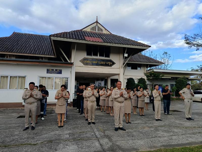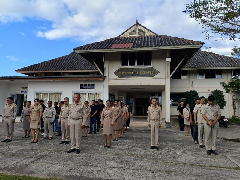 วันจันทร์ ที่ 22 ธันวาคม 2568 เทศบาลตำบลยางชุม นำโดยนายสมควร ระเเพงศรี นายกเทศมนตรีตำบลยางชุม พร้อมด้วยคณะผู้บริหาร สมาชิกสภาฯ ข้าราชการ เเละพนักงานเทศบาลทุกคน จัดกิจกรรมเคารพธงชาติหน้าเสาธงร้องเพลงชาติ ซึ่งจัดขึ้นทุกวันจันทร์ เพื่อเเสดงความจงรักภักดีต่อชาติ ศาสนา พระมหากษัตริย์ เเละเเสดงความไว้อาลัยให้กับทหารกล้า ณ บริเวณหน้าเสาธง สำนักงานเทศบาลตำบลยางชุม