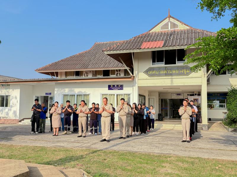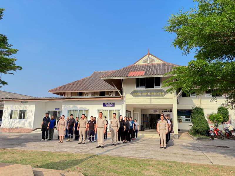 วันจันทร์ ที่ 30 มีนาคม 2569 เทศบาลตำบลยางชุม นำโดยนายสมควร ระเเพงศรี นายกเทศมนตรีตำบลยางชุม พร้อมด้วยคณะผู้บริหาร สมาชิกสภาฯ ข้าราชการ เเละพนักงานเทศบาลทุกคน จัดกิจกรรมเคารพธงชาติหน้าเสาธงร้องเพลงชาติ ซึ่งจัดขึ้นทุกวันจันทร์ เพื่อเเสดงความจงรักภักดีต่อชาติ ศาสนา พระมหากษัตริย์ เเละร่วมไว้อาลัยเเด่สมเด็จพระนางเจ้าสิริกิติ์ พระบรมราชินีนาถ พระบรมราชชนนีพันปีหลวงเเละเหล่าทหารกล้า ณ บริเวณหน้าเสาธง สำนักงานเทศบาลตำบลยางชุม