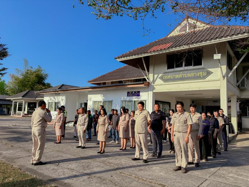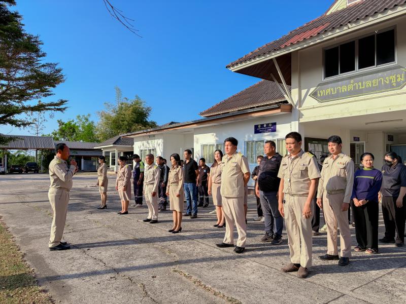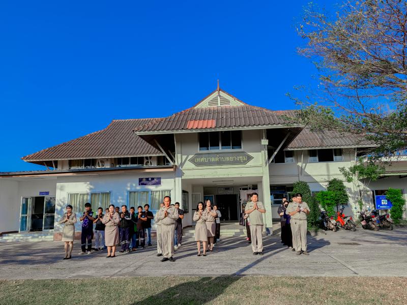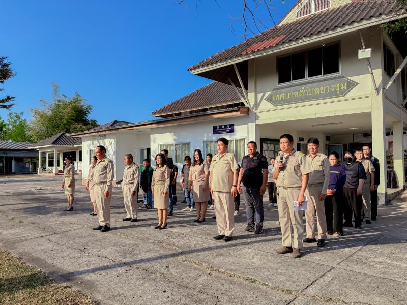 วันจันทร์ ที่ 9 กุมภาพันธ์ 2569 เทศบาลตำบลยางชุม นำโดยนายสมควร ระเเพงศรี นายกเทศมนตรีตำบลยางชุม พร้อมด้วยคณะผู้บริหาร สมาชิกสภาฯ ข้าราชการ เเละพนักงานเทศบาลทุกคน จัดกิจกรรมเคารพธงชาติหน้าเสาธงร้องเพลงชาติ ซึ่งจัดขึ้นทุกวันจันทร์ เพื่อเเสดงความจงรักภักดีต่อชาติ ศาสนา พระมหากษัตริย์ เเละเเสดงความไว้อาลัยให้กับทหารกล้า ณ บริเวณหน้าเสาธง สำนักงานเทศบาลตำบลยางชุม