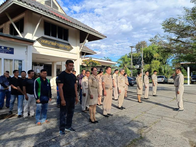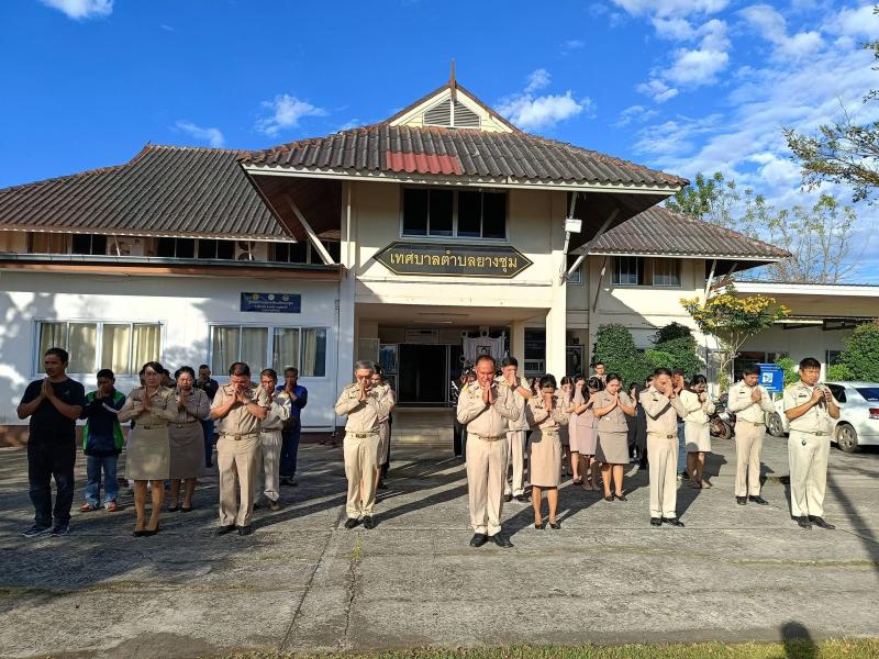 วันจันทร์ ที่ 15 ธันวาคม 2568 เทศบาลตำบลยางชุม นำโดยนายสมควร ระเเพงศรี นายกเทศมนตรีตำบลยางชุม พร้อมด้วยคณะผู้บริหาร สมาชิกสภาฯ ข้าราชการ เเละพนักงานเทศบาลทุกคน จัดกิจกรรมเคารพธงชาติหน้าเสาธงร้องเพลงชาติ ซึ่งจัดขึ้นทุกวันจันทร์ เพื่อเเสดงความจงรักภักดีต่อชาติ ศาสนา พระมหากษัตริย์ ณ บริเวณหน้าเสาธง สำนักงานเทศบาลตำบลยางชุม