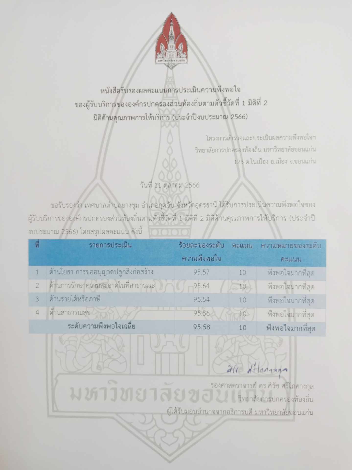 รายงานผลการสำรวจและประเมินผลความพึงพอใจของผู้รับบริการ ประจำปีงบประมาณ พ.ศ. 2566