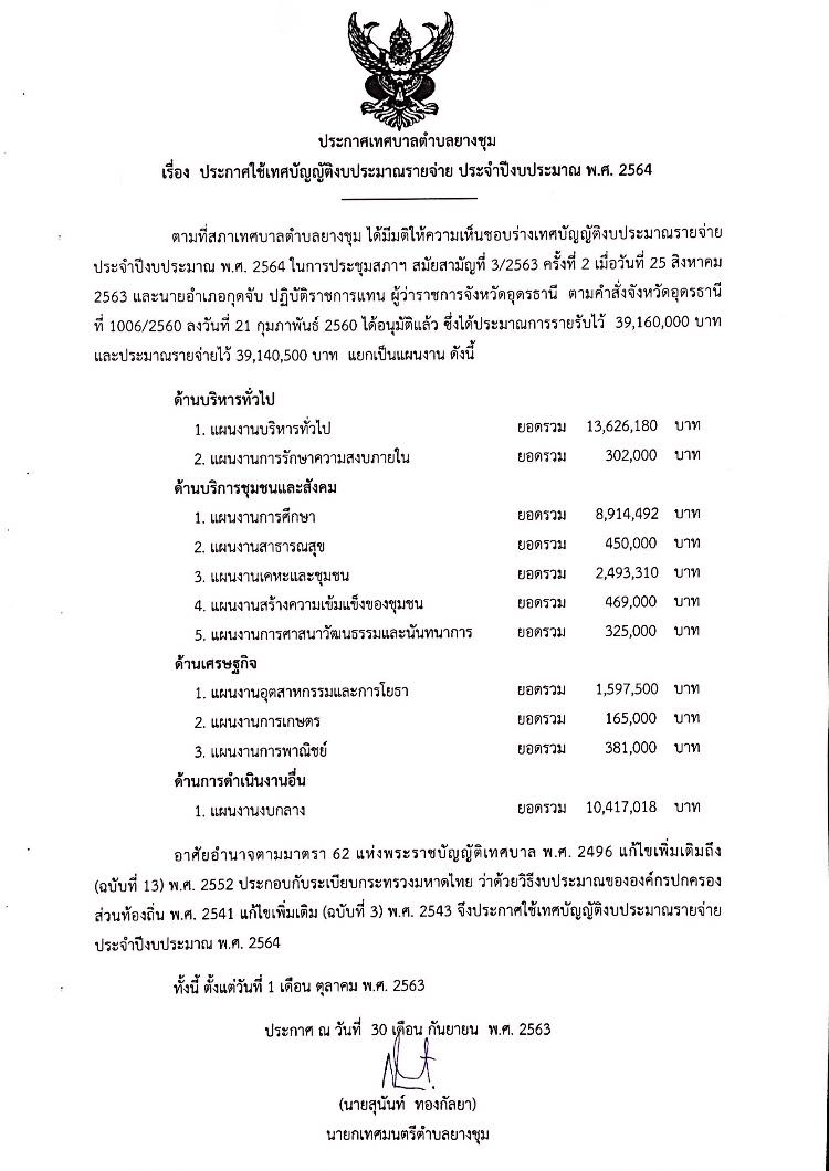 ประกาศใช้เทศบัญญัติงบประมาณรายจ่าย ประจำปีงบประมาณ พ.ศ.2564