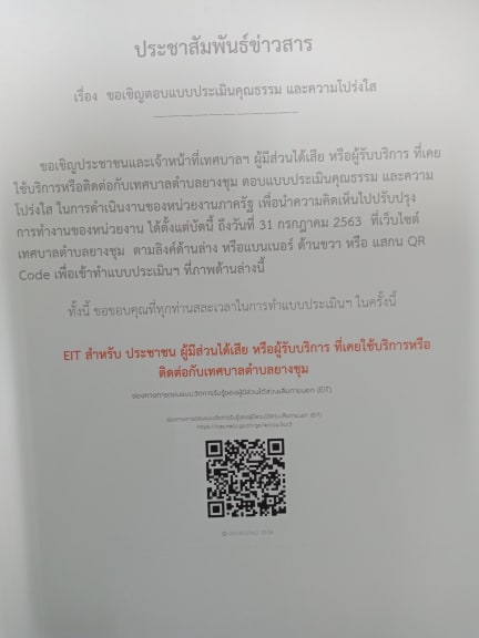 ประชาสัมพันธ์ขอเชิญตอบแบบประเมินคุณธรรม และความโปร่งใส ประจำปี 2563