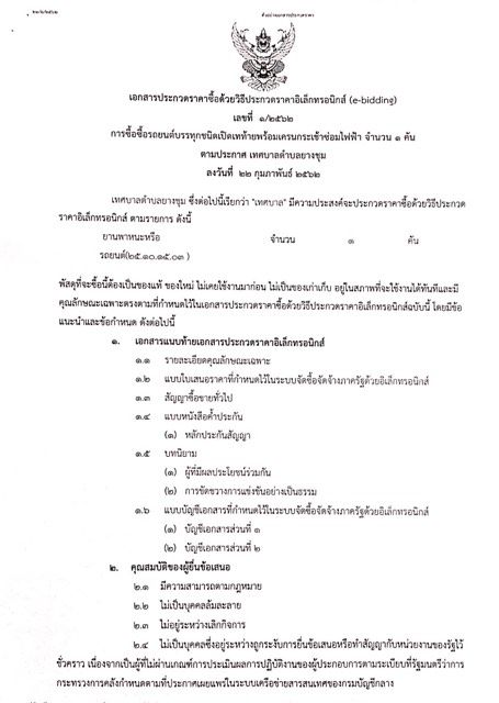 ประกาศเรื่อง ประกวดราคาซื้อรถยนต์บรรทุกชนิดเปิดเทท้ายพร้อมเครนกระเช้าซ่อมไฟฟ้า จำนวน 1 คัน ด้วยวิธีประกวดราคาอิเล็กทรอนิกส์ (e-bidding)