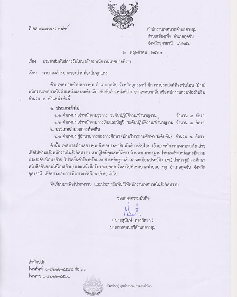 ประชาสัมพันธ์การรับโอน (ย้าย) พนักงานเทศบาลที่ว่าง