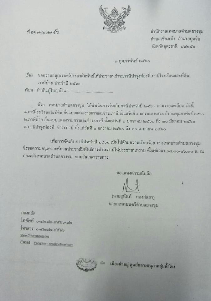 ประชาสัมพันธ์รับชำระภาษี ปี 2560